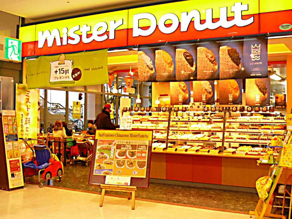 店舗により、ボウタイとドーナツ(円)を組み合わせた上記ロゴを更に抽象化したものを用いている場合も有る。 日本 での略称は「 ミスド 」。 1971年 に日本での事業を開始しており、 ケンタッキーフライドチキン や マクドナルド などと同じく、日本国内では最も早い時期に営業を開.